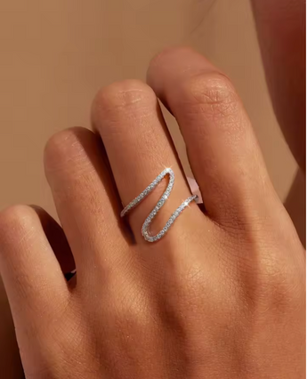 Der Wave of Light Ring ist ein Schmuckstück voller Dynamik und Eleganz. Aus hochwertigem 925 Sterling-Silber gefertigt, schmiegt er sich in sanft geschwungener Wellenform um den Finger. Funkelnde Zirkonia-Steine setzen strahlende Akzente und lassen die fließende Form in jedem Licht lebendig wirken.