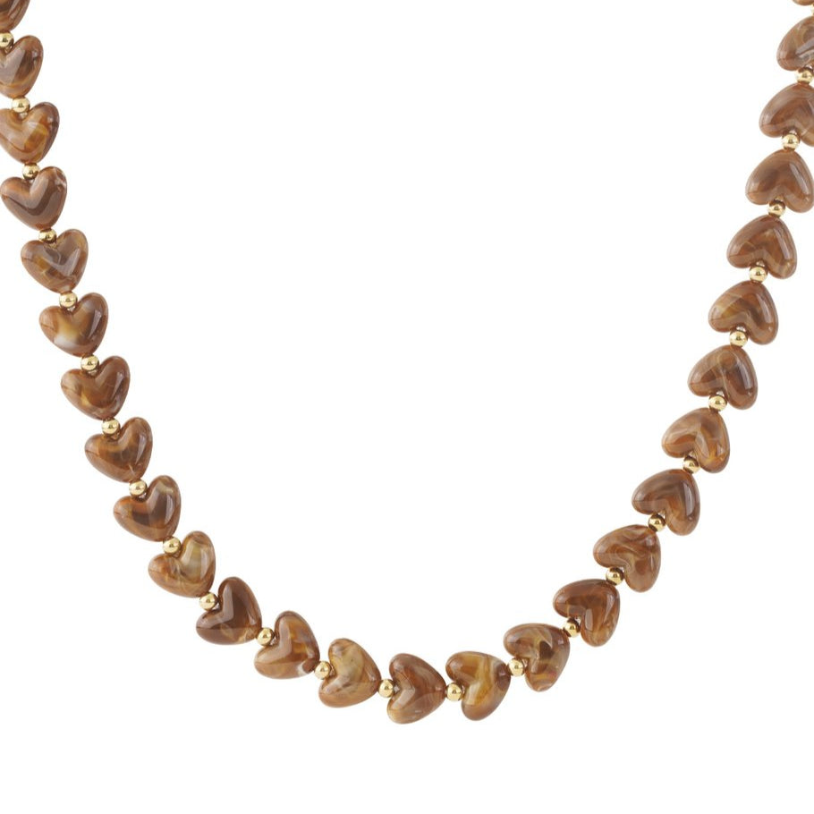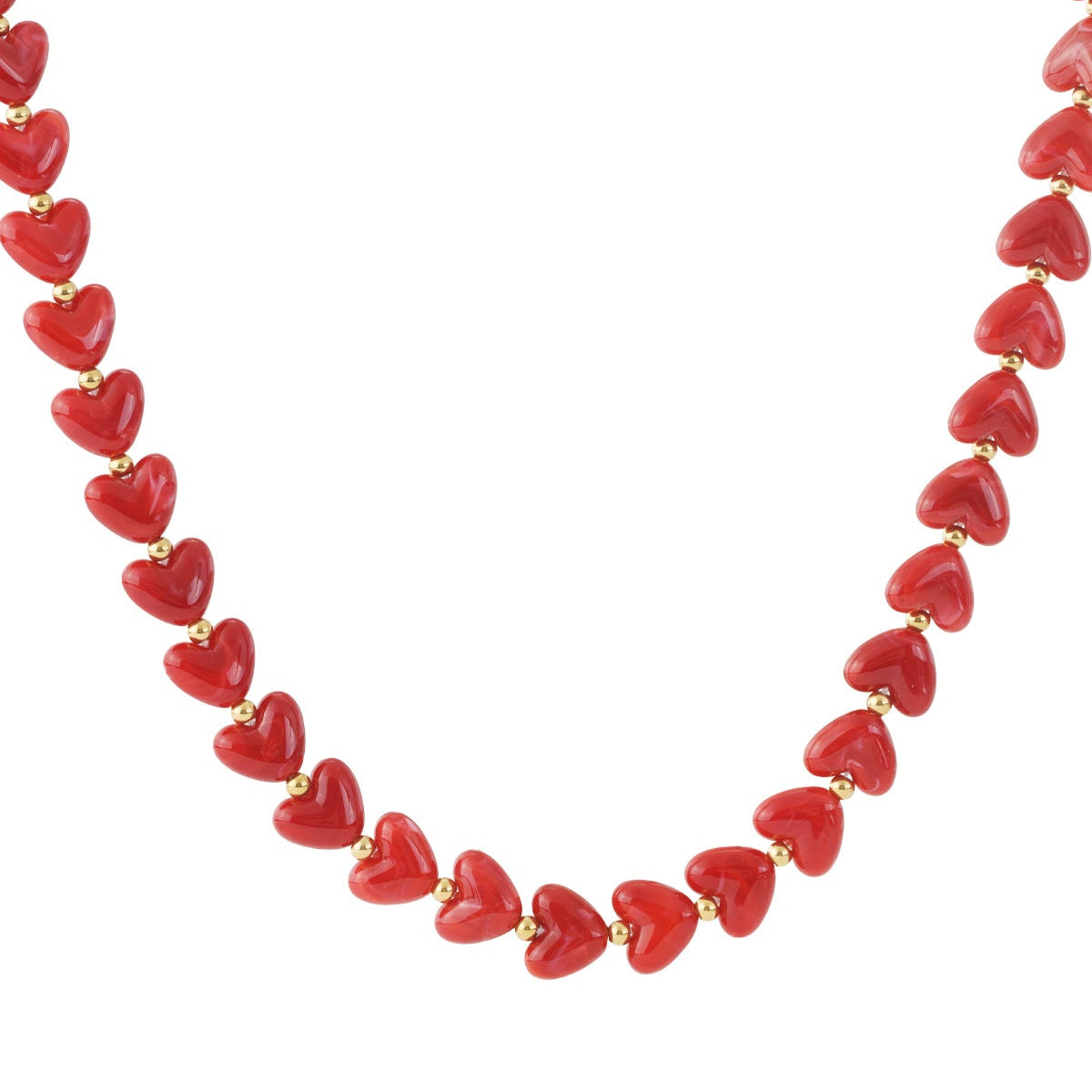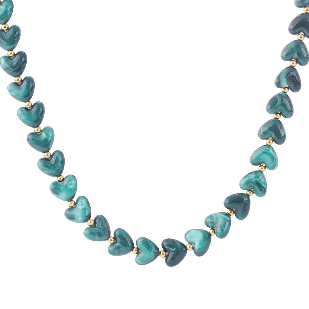 Die Love Gems Halskette ist pure Emotion zum Tragen. Jede Kette besteht aus zarten Herzperlen in intensiven Farben, die durch kleine goldene Zwischenperlen akzentuiert werden. Ob in Grün, Rosa, Braun oder Rot – jede Variante strahlt ihren eigenen Charakter aus: von sanft-romantisch bis ausdrucksstark und kraftvoll.