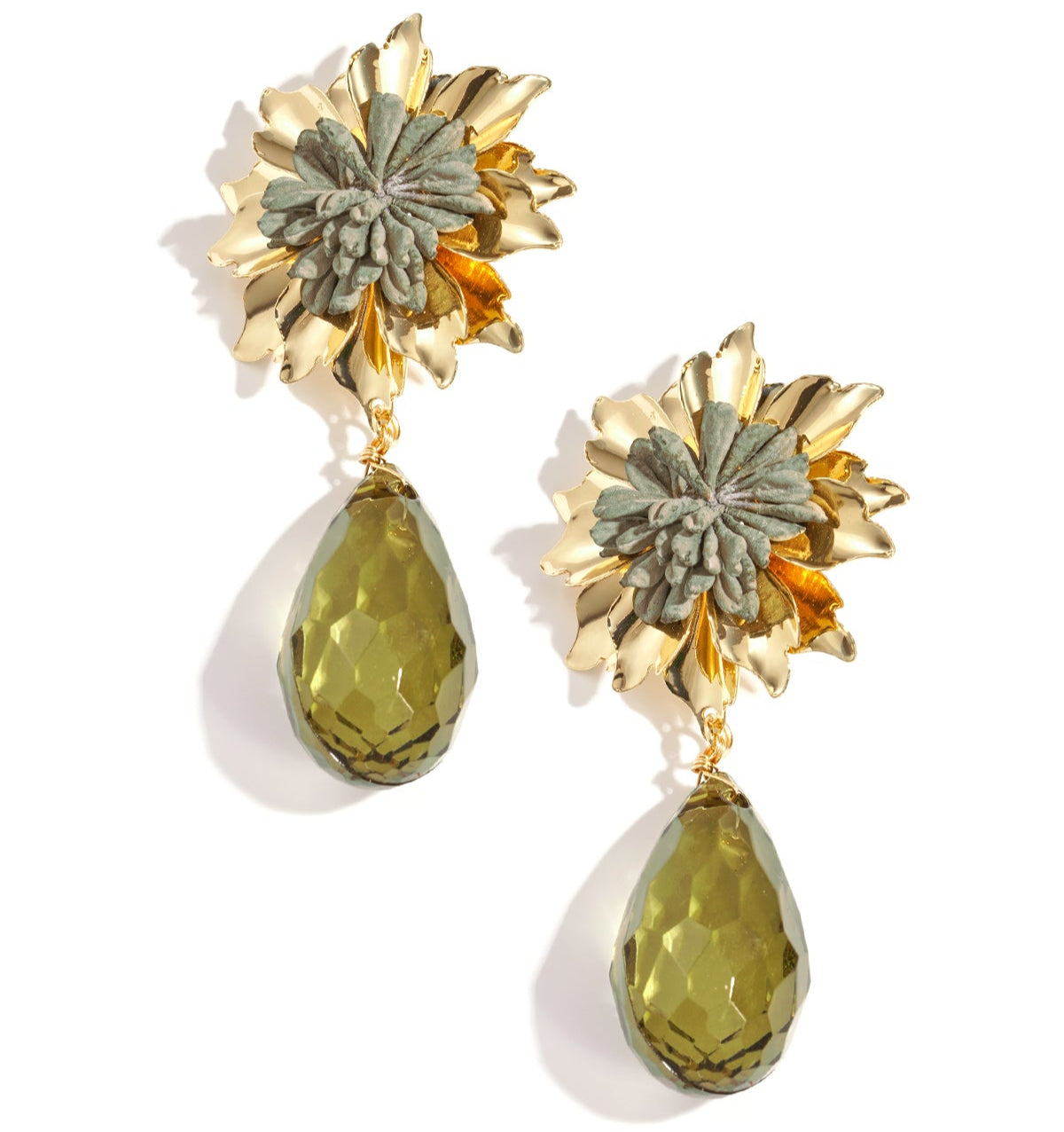 Die Mireille Ohrringe sind ein Schmuckstück für besondere Auftritte. Gefertigt aus Resin mit stabilisierendem Eisen, begeistern sie durch ihre kunstvolle Blütenform in glänzendem Goldfinish. Ein farbiger, facettierter Resin-Tropfen bildet den Blickfang und verleiht den Ohrringen Bewegung und Strahlkraft.