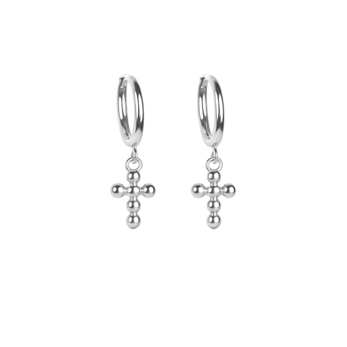 Die BUBBLE CROSS Ohrringe kombinieren schlichte, glänzende Creolen aus 925 Sterling-Silber mit einem verspielten Kreuz-Anhänger im Bubble-Look. Das Ergebnis: ein cleaner Everyday-Style mit einem kleinen Statement – minimalistisch, aber mit Charakter.