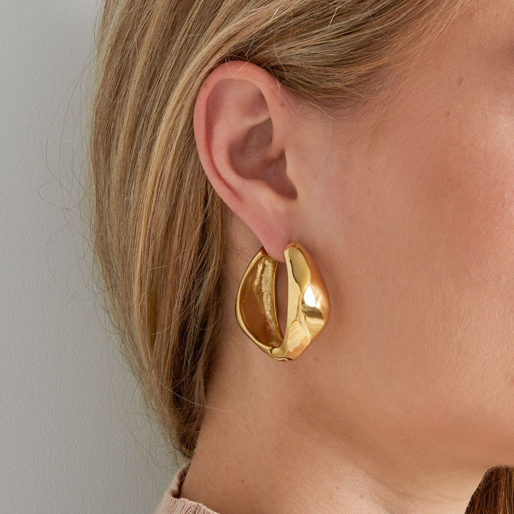 Die ELARA Creolen verbinden moderne Ästhetik mit zeitloser Eleganz. Ihre sanft geschwungene, organische Form erinnert an fließendes Metall – minimalistisch, aber dennoch ein Statement.