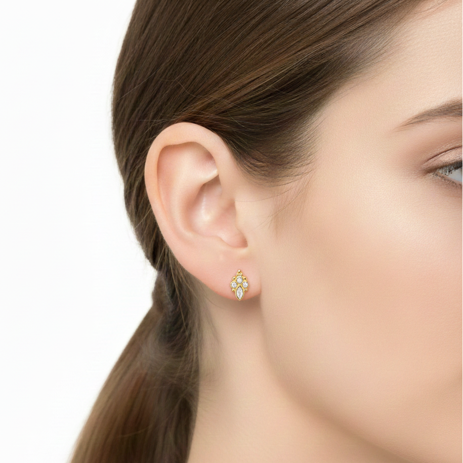 ALIX ist ein feiner Ohrstecker aus hochwertigem 925 Sterling-Silber, der durch sein ornamentales Design und zart funkelnde Zirkonia-Steine besticht. Die harmonische Form wirkt elegant, ohne aufdringlich zu sein, und macht ALIX zu einem vielseitigen Schmuckstück für jeden Tag. Dank der hochwertigen Verarbeitung ist der Stecker angenehm leicht und ideal auch für empfindliche Ohren.