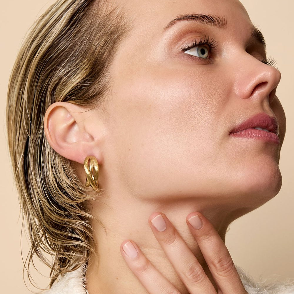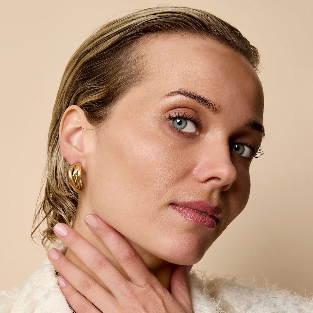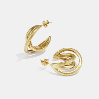 Die ZARIA Ohrringe begeistern mit ihrer fließenden, skulpturalen Form und erinnern an sanft gedrehte Metalllinien. Das ausdrucksstarke Design wirkt modern und kunstvoll zugleich – ein Statement-Piece, das Eleganz und Individualität perfekt vereint.